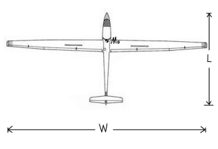 图7滑翔机示意图(W:翼展,L:机长,M0:重心)