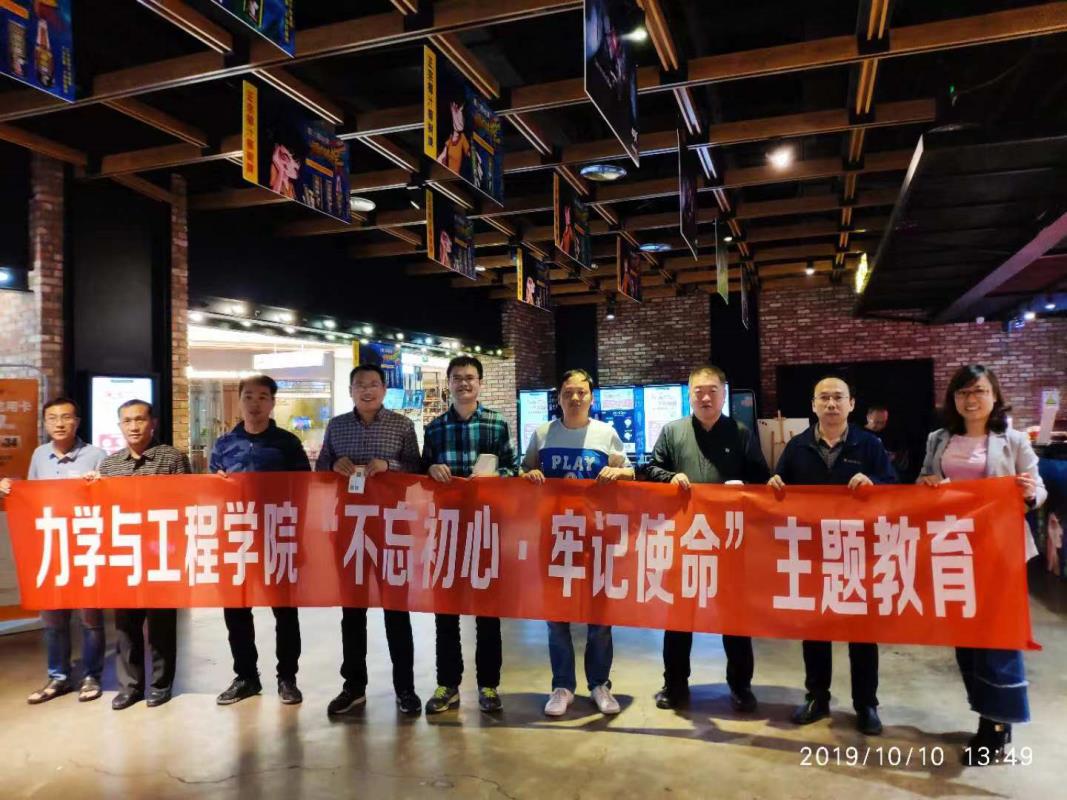 为庆祝中华人民共和国成立70周年,进一步增强学院师生爱国主义情怀,力学与工程学院党委结合当前开展的“不忘初心 牢记使命”主题教育工作要求,10月10日下午开展了“不忘初心,牢记使命”主题教育特色党日活动,组织全体教工、退休教师及研究生党员集中观看爱国主义题材电影《我和我的祖国》。