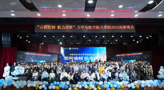 青春是校园生活的绚丽舞台,是梦想起航的重要序章。为欢迎2025级新生、迎接2026年新年、展现学院文化魅力、凝聚青春奋进力量,西南交通大学力学与航空航天学院于2025年12月14日晚在一食堂三楼礼堂隆重举办“云程发轫,航力启新”迎新晚会。参加本次晚会的有学院院长李翔宇,学院副院长李鹏,学院党委副书记孔祥彬、学院本科2025级班导师李航、杨名山、张晓明、郭阳、学院学工组全体老师、兄弟学院学生会指导老师、兄弟学院学生会代表和学院200余名同学们。