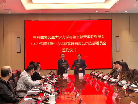 座谈与汇报结束后,中共西南交通大学力学与航空航天学院委员会与中共成都超算中心运营管理有限公司支部委员会正式签订党建共建协议,双方将依托资源优势,常态化开展联学共建与科研育人合作,以党建赋能学科高质量发展。